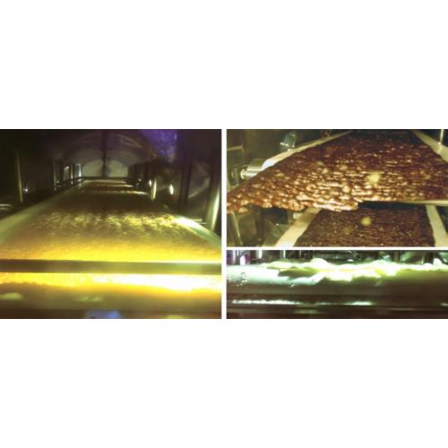 真空低溫液體連續(xù)干燥機(jī)是一種連續(xù)進(jìn)料、連續(xù)出料的真空干燥設(shè)備。待干燥的原料通過進(jìn)料泵將料液輸送至干燥機(jī)內(nèi),并通過布料器均勻的分布在傳送帶上,通過高真空從而降低物料沸點(diǎn)溫度,液體原料水分直接升華為汽體,傳送帶在加熱板上勻速運(yùn)轉(zhuǎn),加熱板內(nèi)熱源可采用蒸汽、熱水或電加熱的方式,通過傳送帶的運(yùn)轉(zhuǎn),從前端的蒸發(fā)、干燥至后端的冷卻出料,溫度段由高到低具體根據(jù)物料特性可調(diào),出料端配有特定的真空粉碎裝置以達(dá)到不同粒度的成品,干燥后的粉料可自動包裝或后續(xù)工藝。